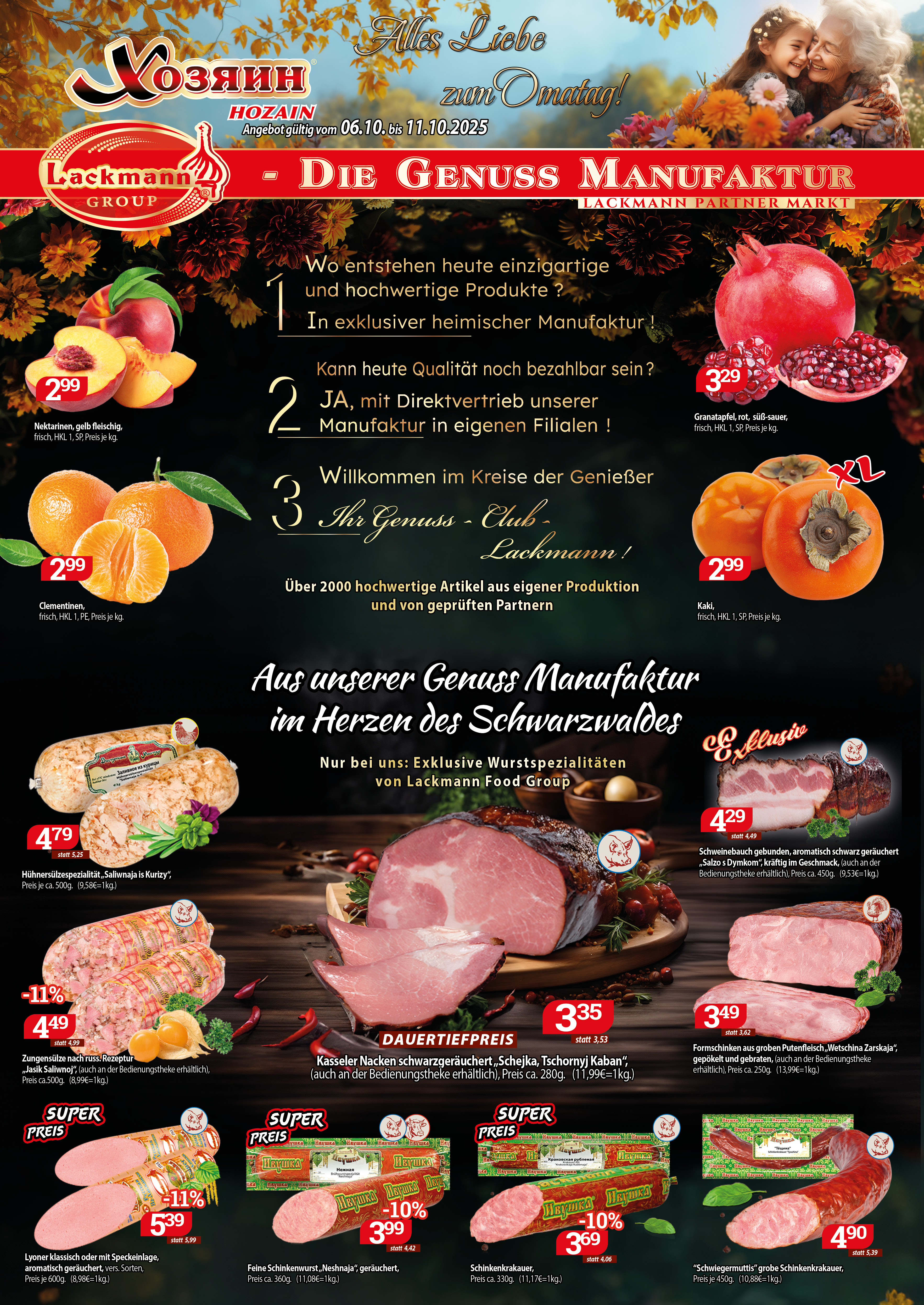 „Gut sortiert. Mehere besondere Tomatensorten. Riesen Auswahl an Salami. Russische Süßigkeiten.“