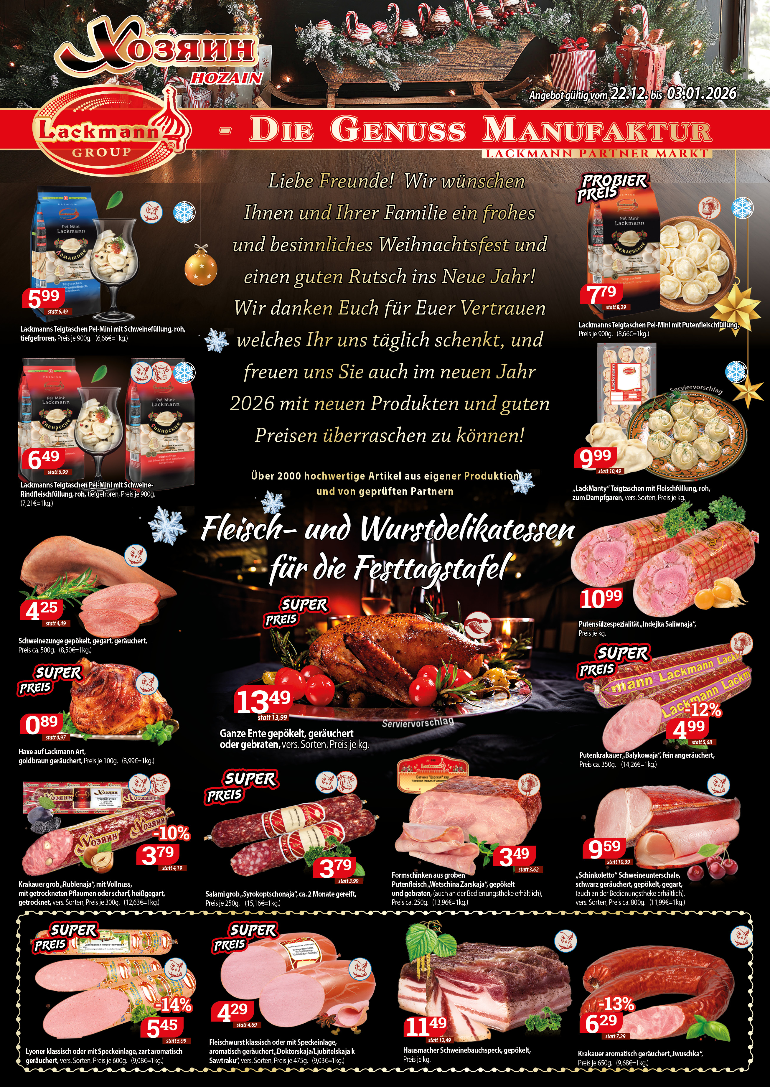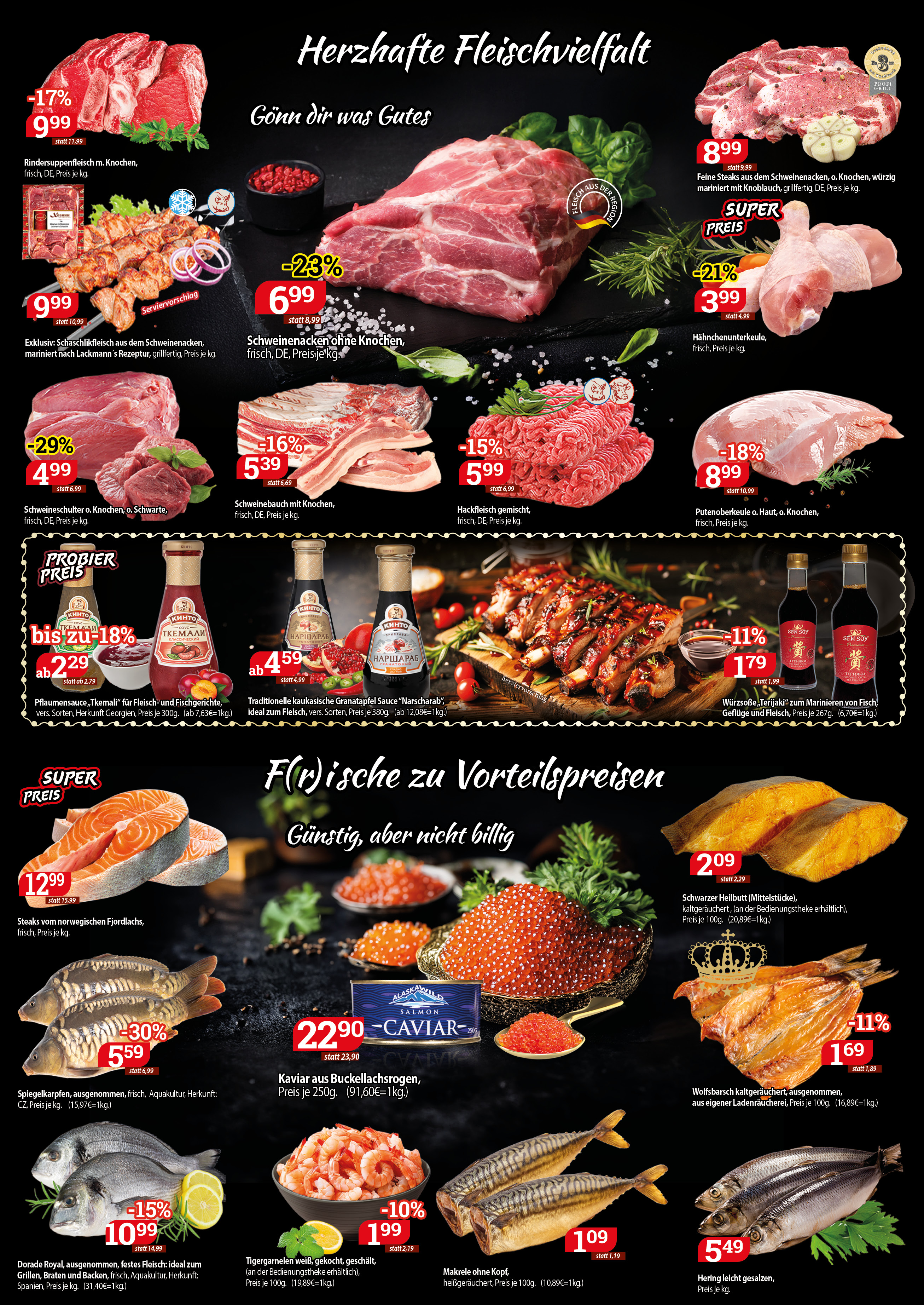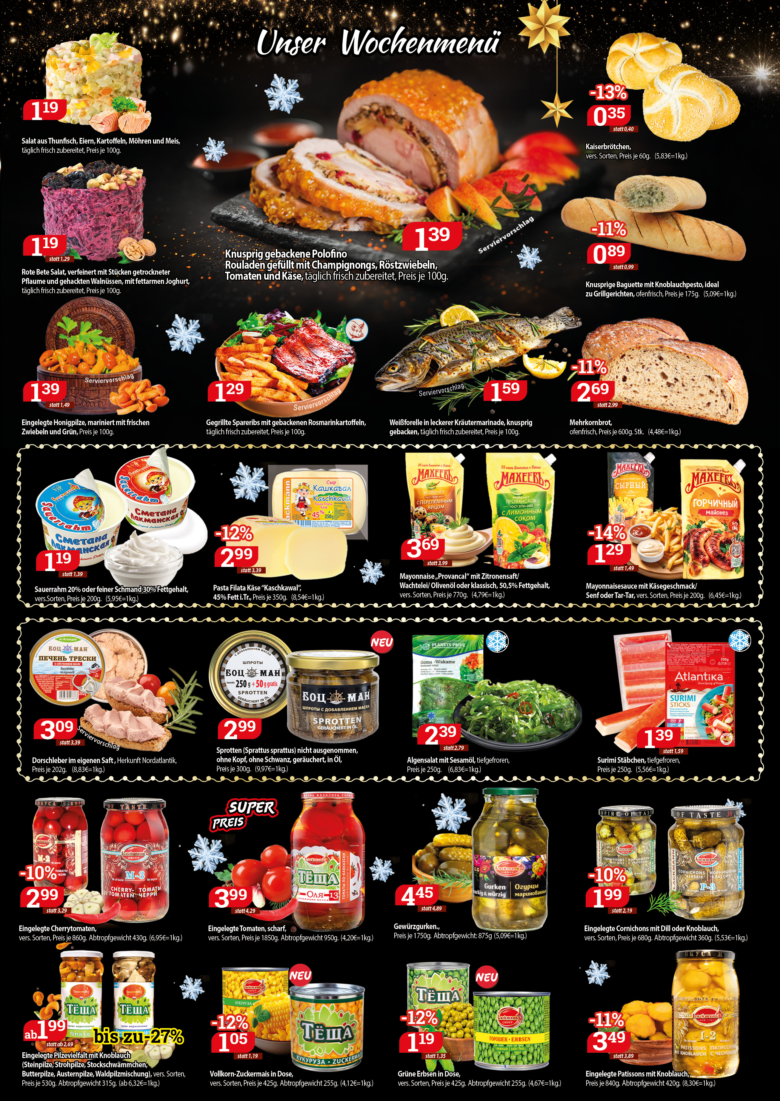 „Gut sortierter russischer Supermarkt mit Fleischtheke. Obst & Gemüse. Sauber. Komme gerne wieder.“